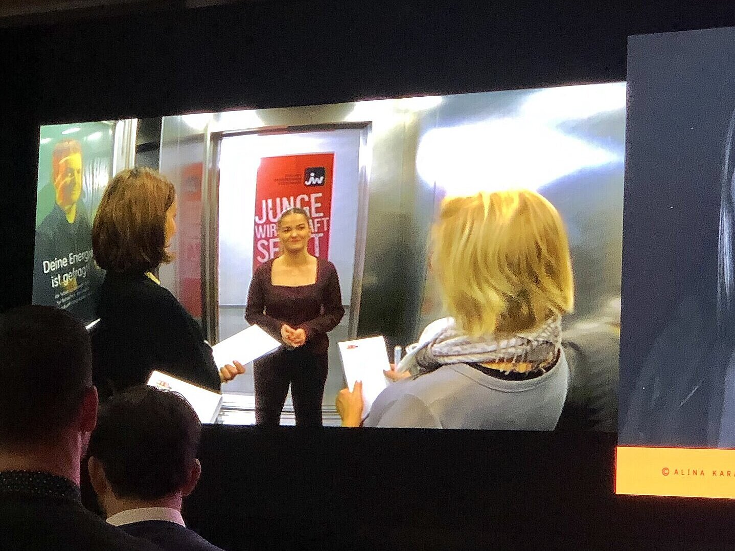 Die Schüler:innen des Zweiges „Entrepreneurship und Management“ nahmen auch in diesem Jahr am Elevator Pitch der Jungen Wirtschaft Steiermark teil und Alina Karaibrahimovic aus der 4CK schaffte es mit ihrer innovativen Idee „WhatsIn App“ ins Finale. Am 06.11.2025 überzeugte sie mit einem 90-Sekunden-Pitch im Lift der Energie Steiermark die Jury und gewann die Schülerwertung und somit € 500,00. Tatkräftig unterstützt wurde sie von ihren Teamkolleginnen Dea Mehmetaj und Merjem Duric.